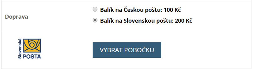 Po kliknutí se otevře pop-up okno, kde je možné vybrat pobočku Slovenské pošty.