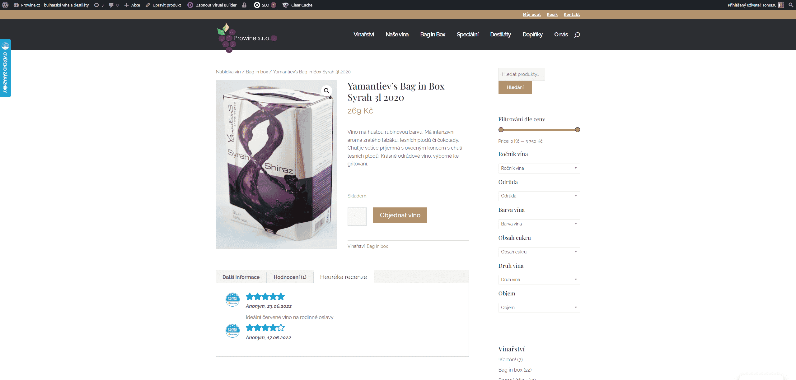 Zároveň můžete načítat z Heuréky i recenzi produktů. Recenze pak můžou být zobrazeny u produktu v samostatné záložce nebo importovány jako klasické recenze WooCommerce zákazníků.