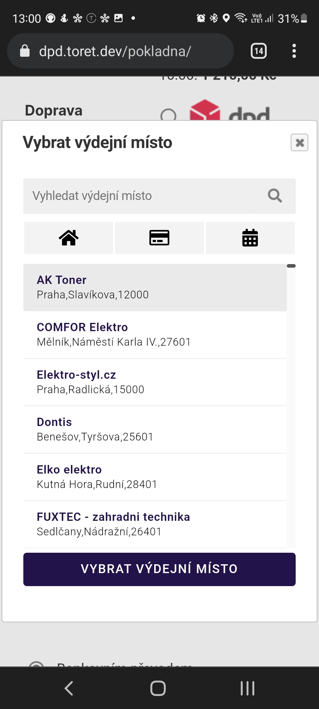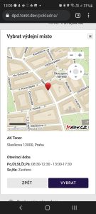 Zapracovali jsme na našem widgetu pro výběr poboček a vylepšili jsme jeho použití na mobilním telefonu. Díky tomu se budou zákazníkům jednoduše vybírat výdejní místa.