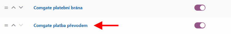 Druhá nová funkce je v platební metodě Comgate platba převodem.