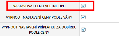 Nastavení je jednoduché. V Hlavním nastavení pluginu pouze zaškrtnete checkbox „Nastavovat cenu včetně DPH“ a uložíte. To je vše, poté již stačí ceny zadávat včetně DPH.