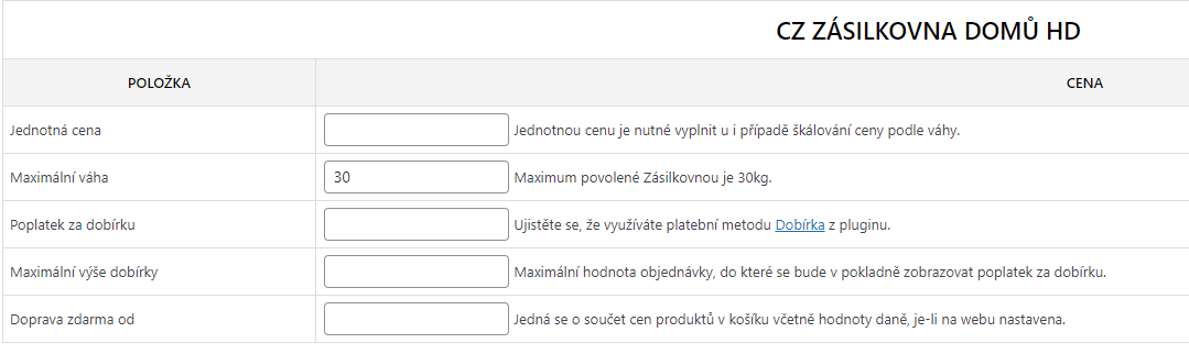 Nastavení dopravy Zásilkovna domů